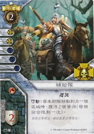 :当本部队移动到另一个区域时,获得2个资源(每个回合限制一次)。
