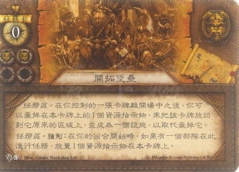 任务区强制:在你的回合开始时,如果有一个部队在此进行任务,放置1个资源指示物在本卡牌上。