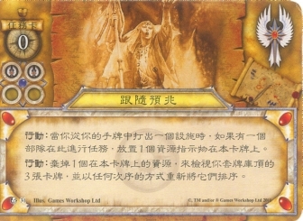 :弃掉1个在本卡牌上的资源,来检视你套牌库顶的3张卡牌,并以任何次序的方式重新将它们排序。