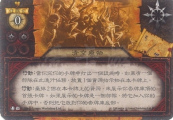 :弃掉2个在本卡牌上的资源,来展示你套牌库顶的首张卡牌。如果展示的卡牌是一个部队,将它加入你的手牌中。否则把它放到你的套牌库底部。