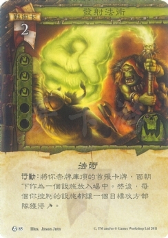 :将你套牌库顶的首张卡牌,面朝下作为一个设施放入场中。然后,每个你控制的设施都让一个目标攻方部队获得