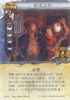 :将你套牌库顶的首张卡牌,面朝下作为一个设施放入场中。然后,将一个卡牌上印制的费用为X或以下的目标部队,移动到由相同玩家控制的另一个区域上。X等于你所控制的设施数量。
