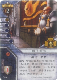 :每个回合把分配到本部队身上的一个伤害点,转嫁到任何战场区里的一个目标部队身上。(如果没有合适的目标,伤害便会被分配到「战士祭司」上。)