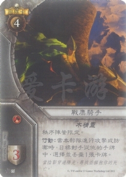 :当本部队进行攻击或防御时,目标对手从他的手牌中,选择并丢弃1张卡牌。
