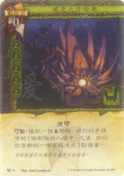 :牺牲一个兽人部队,将你的手牌中的1个部队放入场中。之后,向你的首都的一个区域造成3点伤害。