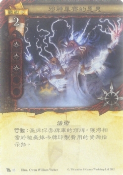 :弃掉你套牌库的顶牌。获得相当于被弃掉卡牌印制费用的资源指示物。