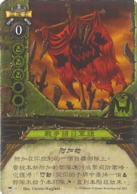 当被本物附加的部队进行攻击或防御时,它获得:「行动:从你的手牌中弃掉一个兽人部队来给与本部队,直到本阶段结束。」