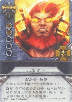 :在你的回合开始时,被本物附加的部队身上有多少点伤害,便向一个目标部队造成多少点伤害。