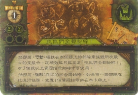 :牺牲在本任务上的部队来摧毁所有敌方的支持卡。这项效能只能在这「把他们全都粉碎!」有3个或以上资源指示物时才可使用。