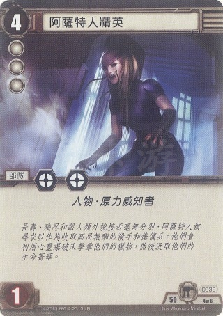 描述长寿、残忍和跟人类外貌接近毫无分别,阿萨特人被寻求以作为收取高昂报酬的杀手和雇佣兵。他们会利用心灵爆破来击晕他们的猎物,