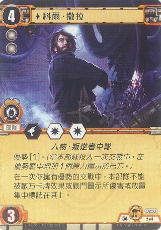 (当本部队投入一次交战中,在优势战中增加1个原力图示于己方。)