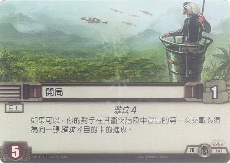 如果可以,你的对手在其冲突阶段中宣告的第一次交战必须为向一张