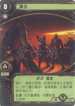 强化一个敌方部队。如果你被多出3个或以上原力图示输掉一场优势战,从场中弃掉本强化卡。