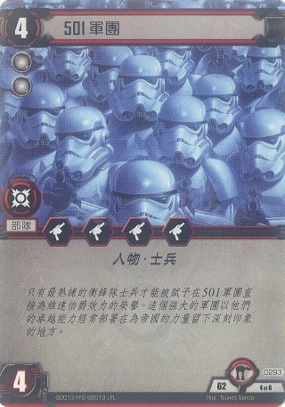 只有最熟练的冲锋队士兵才能被赋予在501军团直接为维达伯爵效力的荣耀。这个强大的军团以他们的卓越能力经常部署在为帝国的力