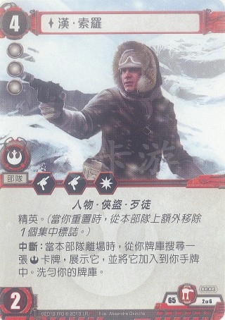 中断:当本部队离场时,从你牌库搜寻一张反抗军同盟卡牌,展示它,并将它加入到你手牌中。洗匀你的牌库。