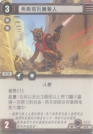 :在你一多出3个或以上原力图示赢得一次原力对抗后,将本部队从你弃牌堆放入场中。