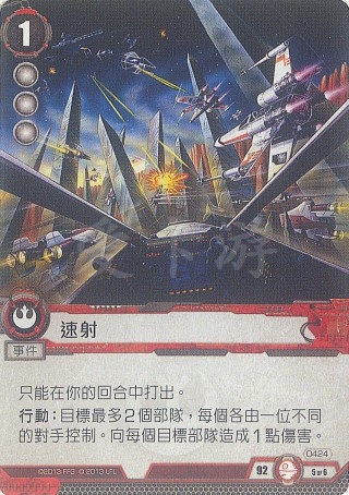 :目标最多2个部队,每个各由一位不同的对手控制。向每个目标部队造成1点伤害。