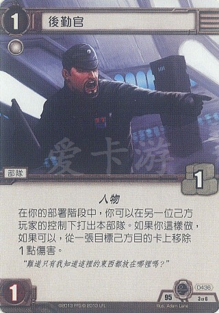 在你的部署阶段中,你可以在另一位己方玩家的控制下打出本部队。如果你这样做,如果可以,从一张目标己方目的卡上移除1点伤害。