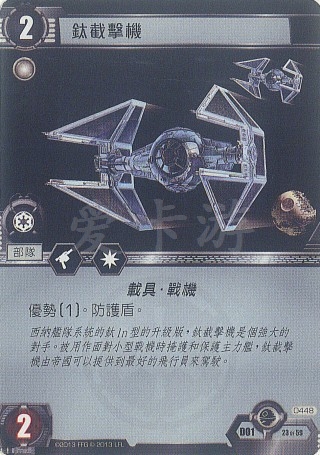 西纳舰队系统的钛1n型的升级版,钛截击机是个强大的对手。被用作面对小型战机时掩护和保护主力舰,钛截击机由帝国可以提供到最