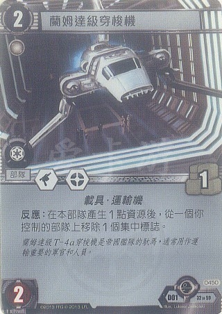 兰姆达级T-4a穿梭机是帝国舰队的驮马,通常用作运输重要的军官和人员。