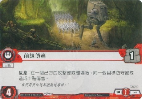 :在一个己方的攻击部队离场后,向一个目标防守部队造成1点伤害。