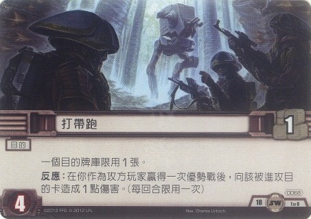 :在你作为攻方玩家赢得一次优势战后,向该被进攻目的卡造成1点伤害。(每回合限用一次)
