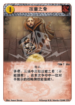:从场中弃除孩童之骨(不能援救),在本次争夺中一位对手展示的战略牌效能值减1。