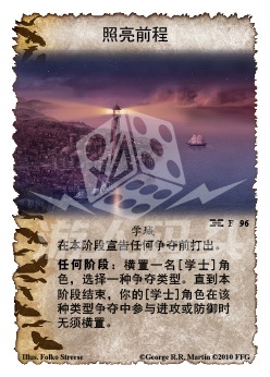:横置一名[学士]角色,选择一种争夺类型。直到本阶段结束,你的[学士]角色在该种类型争夺中参与进攻或防御时无须横置。