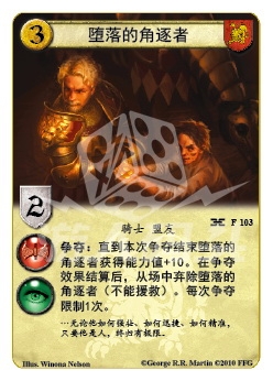 :直到本次争夺结束堕落的角逐者获得能力值+10。在争夺效果结算后,从场中弃除堕落的角逐者(不能援救)。每次争夺限制1次。