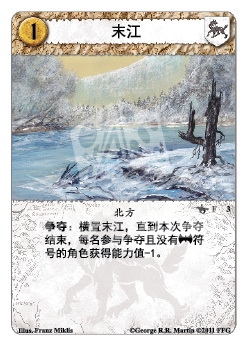 功能说明 争夺:横置末江,直到本次争夺结束,每名参与争夺且没有军事争夺符号的角色获得能力值-1。