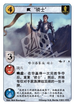 :在你赢得一次完胜争夺后,重置‘骑士’。然后,弃除每位对手家族牌组顶端的一张卡牌。