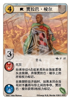 在统御阶段开始时,如果本回合没有对手赢得与你之间的争夺,贾拉巴·梭尔获得2枚权力标记。