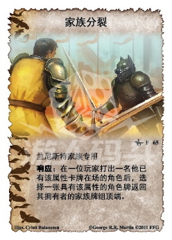 :在一位玩家打出一名他已有该属性卡牌在场的角色后,选择一张具有该属性的角色牌返回其拥有者的家族牌组顶端。