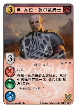 乔拉·莫尔蒙爵士进场后,从场中选择并弃除一名[佣兵]或[盟友]角色。