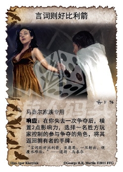 :在你失去一次争夺后,横置2点影响力,选择一名胜方玩家控制的参与争夺的角色,将其返回拥有者的手牌。
