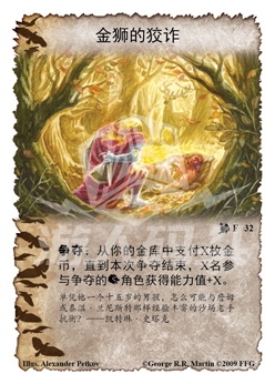 功能说明 争夺:从你的金库中支付X枚金币,直到本次阶段结束,X名参与争夺的兰尼斯特家族角色获得能力值+X。