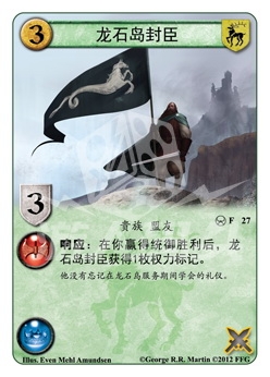 :在你赢得统御胜利后,龙石岛封臣获得1枚权力标记。
