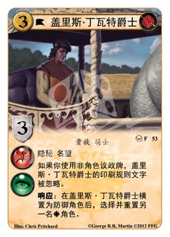 :在盖里斯·丁瓦特爵士横置为防御角色后,选择并重置另一名