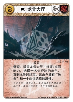 :横置龙骨大厅并横置1点影响力,选择一名你控制的角色。直到本阶段结束,该角色拥有“致命”和一个由你选择的属性。