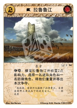 :横置拉鲁鲁江并横置2点影响力,选择一名进攻角色和一名防御角色。将他们重置并移出本次争夺。