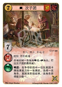 :在争夺阶段中一位玩家因卡牌效果能力补一张牌后,选择一名角色。直到本阶段结束,该角色获得能力值-1。