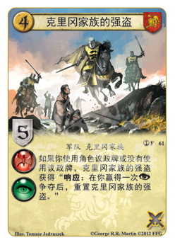 如果你使用角色议政牌或没有使用议政牌,克里冈家族的强盗获得“