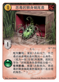 :横置1点影响力,将恶毒的狮身蝎尾兽附属到另一名合理的角色。”)