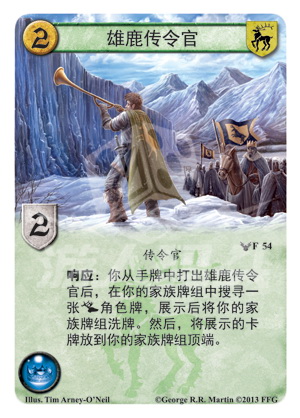 :你从手牌中打出雄鹿传令官后,在你的家族牌组中搜寻一张