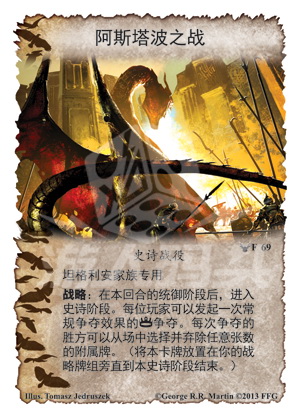 争夺,每次争夺的胜方可以从场中选择并弃除任意张数的附属牌。(将本卡牌放置在你的战略牌组旁直到本史诗阶段结束。)