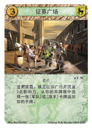 任何阶段:横置征募广场并横置2点影响力,从你的弃牌堆中选择一张[军队]或[旗手]卡牌返回你的手牌。