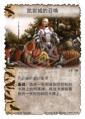 :选择一张附属到你控制的卡牌上的附属牌,将该卡牌转移到另一张你控制的卡牌上。