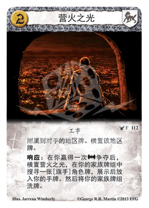 争夺后,横置营火之光,在你的家族牌组中搜寻一张[旗手]角色牌,展示后放入你的手牌,然后将你的家族牌组洗牌。