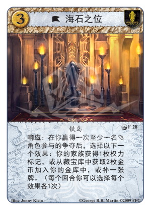 角色参与的争夺后,选择以下一个效果:你的家族获得1枚权力标记,或从藏宝库中获取2枚金币加入你的金库中,或补一张牌。(每个回合你可以选择每个效果各1次)