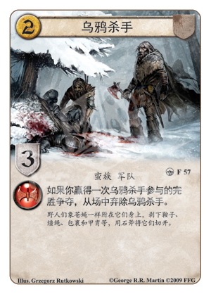 如果你赢得一次乌鸦杀手参与的完胜争夺,从场中弃除乌鸦杀手。